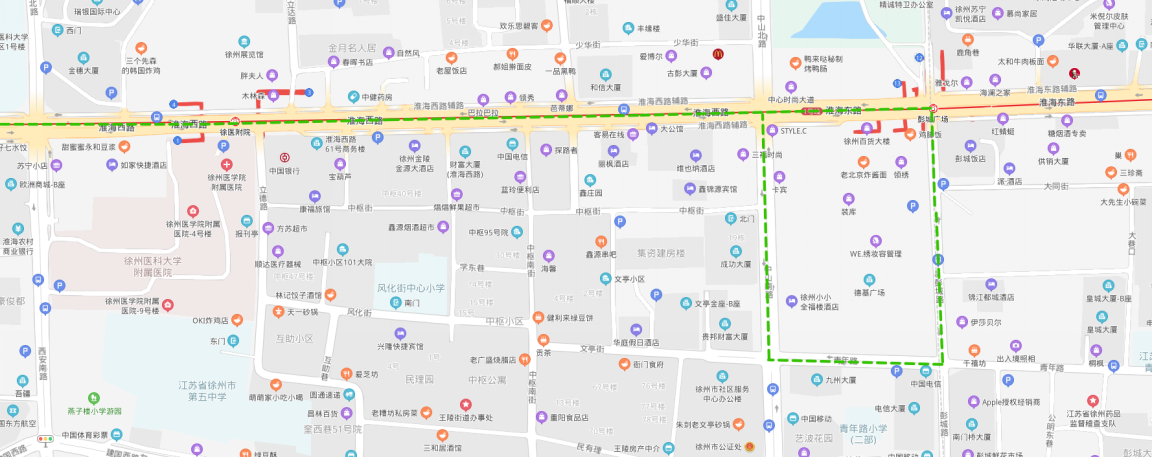(2)??空军c:夾河高中(大彭鎮(zhèn))、大彭醫(yī)院、霸王山水泥廠、十八屯、徐州誠遠(yuǎn)眼耳鼻喉醫(yī)院、雨潤新城、火花農(nóng)貿(mào)市場、生物工程學(xué)院北門、奎山散熱器公司、徐醫(yī)附院華豐分院、出入境辦理中心、小康人家、段南新村、段莊、礦務(wù)局、工人醫(yī)院、市二院、浦發(fā)銀行、彭城飯店、中央百大(單邊)。