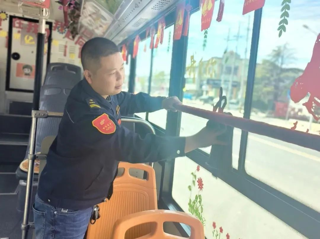 為了給乘客一個舒適的乘車環(huán)境,他總是想辦法把車輛布置得很溫馨。冬天他在車上張貼了紅色的窗花,在扶手上纏上暖暖的紅絲絨。春天張貼了柳葉、花草,讓車廂充滿春天的氣息。為了讓大家感受到雷鋒精神,他在車內(nèi)制作了以雷鋒精神為主題的標(biāo)語、拉手,在車前放置了便民箱,為乘客提供暈車藥、創(chuàng)可貼、針線包等物品。為慶祝建黨百年,王石龍把車廂裝扮成紅色宣傳車,添置了紅色小人書,自費(fèi)做了燈箱畫報,并放置了醫(yī)藥箱、便民袋。在他的車廂里,可以讀到軍隊十大英模人物和雷鋒的先進(jìn)事跡,可以閱覽無償獻(xiàn)血宣傳畫報。今年國慶前期,王石龍自費(fèi)購買了小禮物贈與乘客,在清華中學(xué)定制公交上,王石龍還與同學(xué)生們一起,揮舞著國旗,共同慶祝祖國母親73歲華誕。