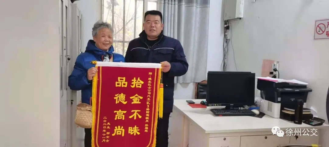 第二天,失主郝大娘來到車隊(duì)問詢,是否有駕駛員撿到一個(gè)手提袋,核對信息后,車隊(duì)工作人員將物品交還給失主??吹绞Ф鴱?fù)得的物品,郝大娘十分激動(dòng),連聲致謝,又特意制作了一面錦旗送到車隊(duì),再次對駕駛員拾金不昧、樂于助人的