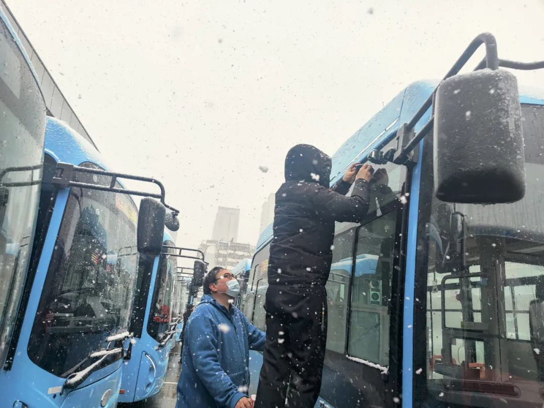 1月14日上午,徐州市氣象臺發(fā)布道路結(jié)冰黃色預(yù)警[Ⅲ級/較重],氣溫驟降,徐州迎來了2023年第一場冬雪。面對寒潮雨雪冰凍惡劣天氣,公交集團立即啟動特殊天氣應(yīng)急預(yù)案,集團黨委委員、副總經(jīng)理丁玉華帶領(lǐng)安全環(huán)保部人員上線檢查,基層單位分管安全負(fù)責(zé)人以雪為令,多措并舉做好寒潮雨雪大風(fēng)天氣公交安全運營工作,保障市民安全便捷出行。