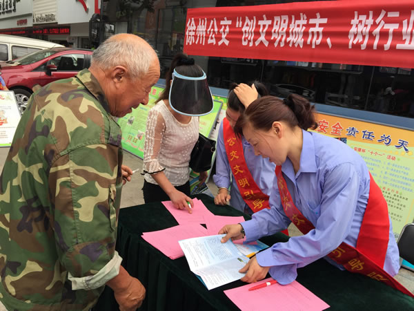 6月16日上午,賈汪公司組織駕乘人員身披綬帶,在賈汪區(qū)中心步行街開(kāi)展“創(chuàng)文明城市,樹(shù)行業(yè)新風(fēng)”便民咨詢(xún)活動(dòng),發(fā)放《徐州公交乘車(chē)指南》,征求市民建議和意見(jiàn),受到廣大市民好評(píng)。?xml:namespace>
