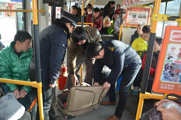 122日,在第三個全國交通安全日來臨之際,公交服務(wù)督導(dǎo)隊聯(lián)合公安公交管理大隊開展了危險品大檢查。檢查組分為5個小隊,分別在火車站廣場、副廣場,東甸子公交站臺,對公交車乘客攜帶物品進(jìn)行仔細(xì)檢查,確保公交乘客安全。